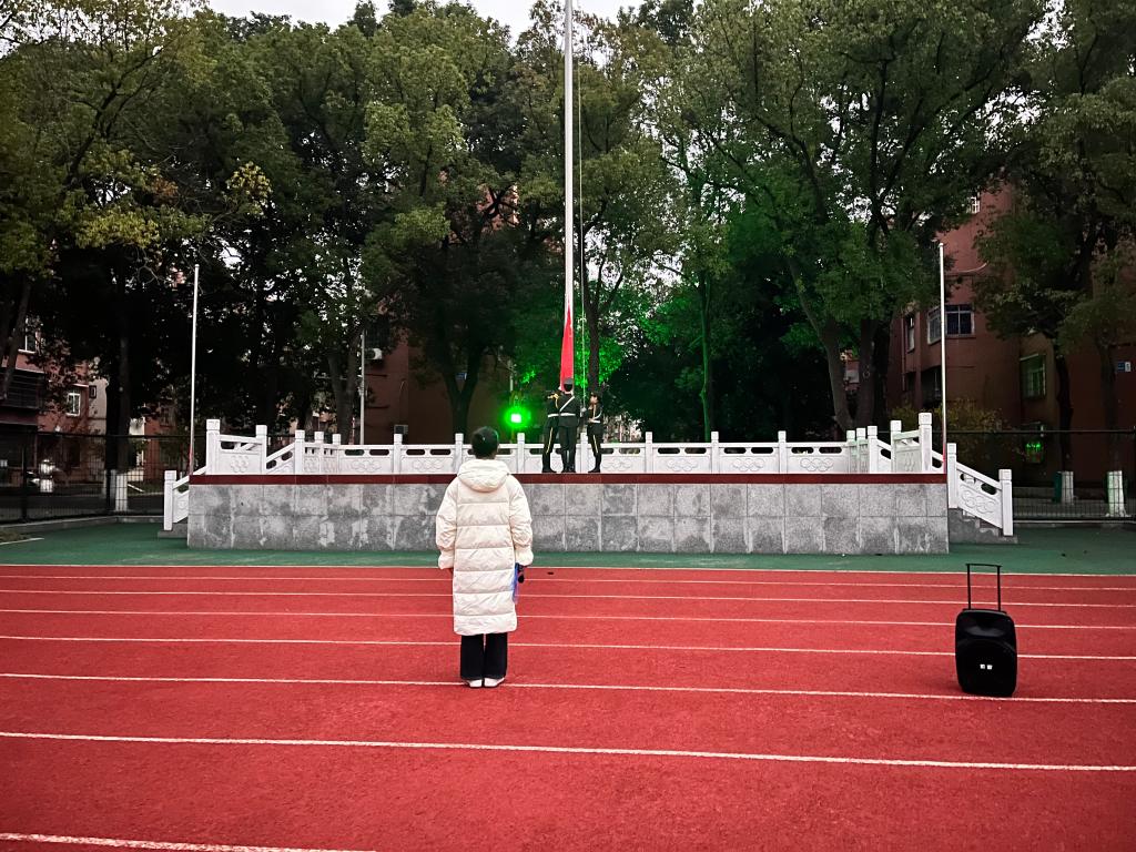 6 时 58 分,主持人李佳彤宣布仪式开始。7 时整,国歌激昂奏响,鲜艳五星红旗冉冉升起,全体师生庄重凝视,高唱国歌,爱国豪情在心中澎湃。庄严仪式后,计科类 32411 班孟子博同学发表《以青春之力,开拓国家科技强盛新征程》演讲。他谈到祖国于时代浪潮中稳健前行,科技为复兴关键,大学乃成长摇篮,吾辈应精研专业、拓宽视野、提升能力,以知识作科技基石。大学生当凭青春创造活力,投身科创实践,借竞赛、项目、活动锤炼能力、塑造思维,与各界协作解实际难题。同时还需树立正确价值观,依国家需求投身专业研究,勇创新、克艰难、善学习,育团队精神与社会担当,以青春热血践行“求实、进取、创业、报国”的长大精神,为中国梦奉献力量。
