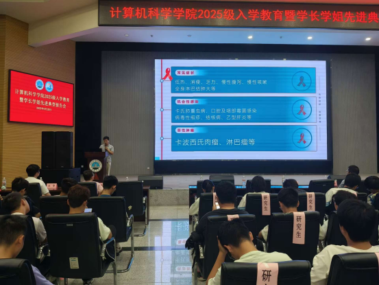 大会聚焦新生成长核心需求,构建了多维度的内容体系。在健康防护板块,学院心理专干蒋老师围绕艾滋病的传播途径、预防方法及相关政策法规展开科普,通过真实案例解析与科学知识宣讲,帮助新生建立正确的健康认知,强化自我保护意识。针对新生从高中到大学的环境转变,大会以"拥抱变化,主动适应"为核心,系统解读了大学学业模式、人际关系特点与自主规划要点,通过"大学初体验"互动分享,引导新生正视可能出现的迷茫情绪,掌握适应期的调整方法。