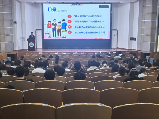 培训会的最后,蒋老师着重介绍了成人有声小说四级心理危机干预体系和学生心理健康教育中心,给同学们展示学生心理健康教育中心的实景,让同学们牢记24小时生命热线,了解心理中心的服务项目和咨询项目,并且要求参会学生干部会后及时传达此次培训会相关内容。