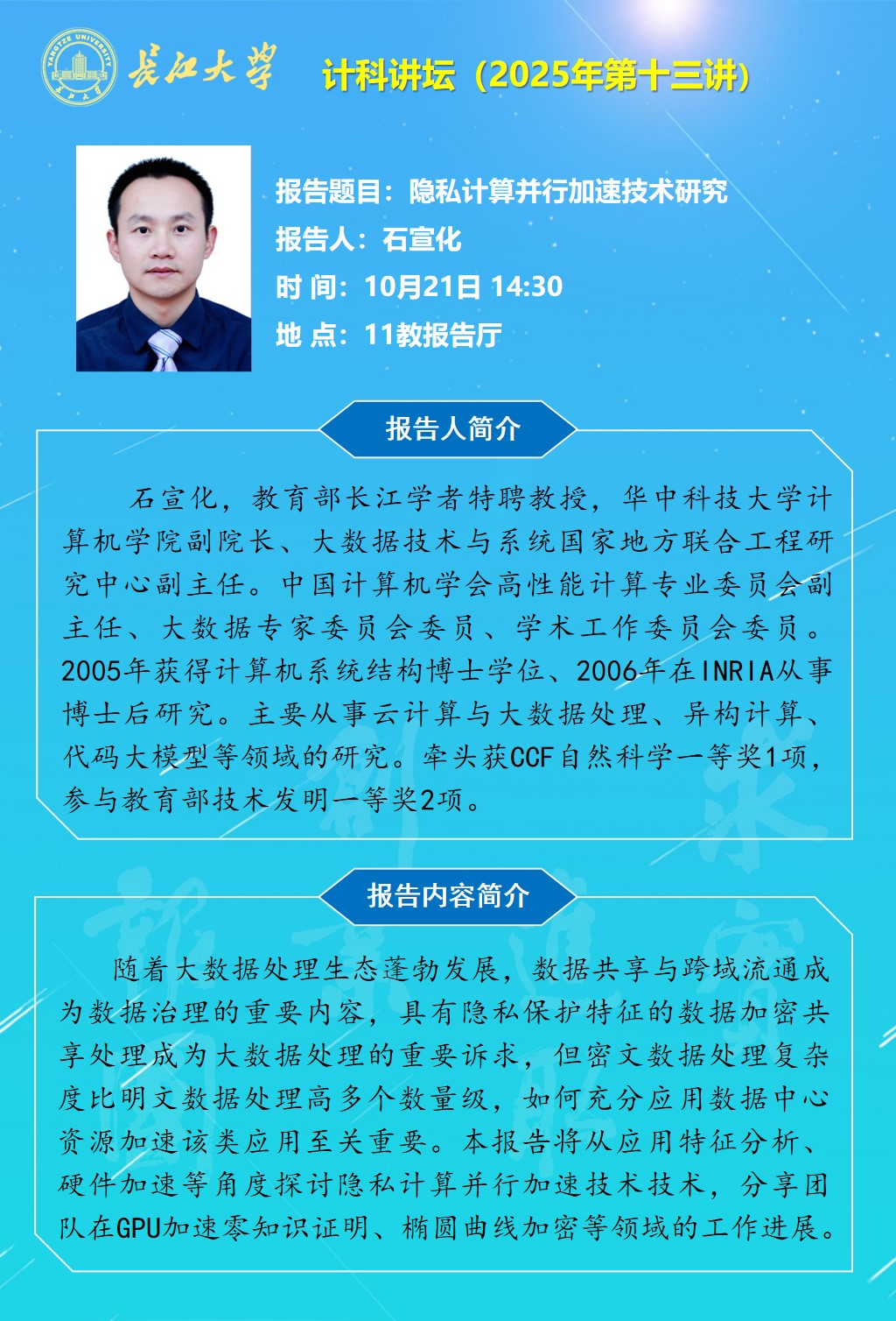 计科讲坛(2025年第十三讲):隐私计算并行加速技术研究
