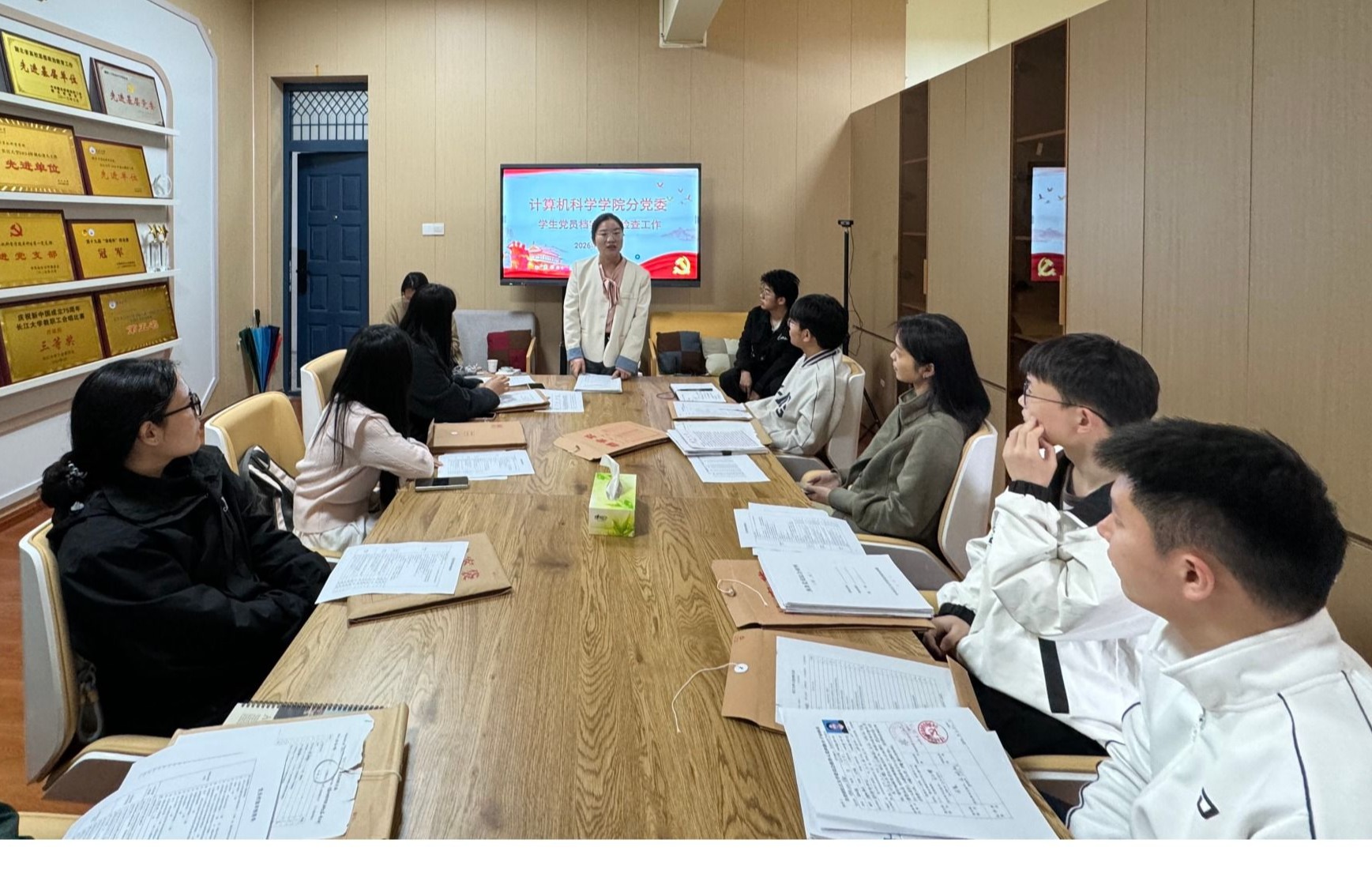 根据学校相关文件精神及学院党委工作部署,为进一步规范党员档案管理,强化党员发展程序合规性,学院党委于2026年3月16日至4月10日组织各学生党支部开展学生党员档案专项检查工作。学院学生党建专项负责人高滢老师于3月16日主持召开专项工作会议,部署核查任务,明确标准要求,保障工作有序推进。目前,全部检查及整改任务已圆满完成